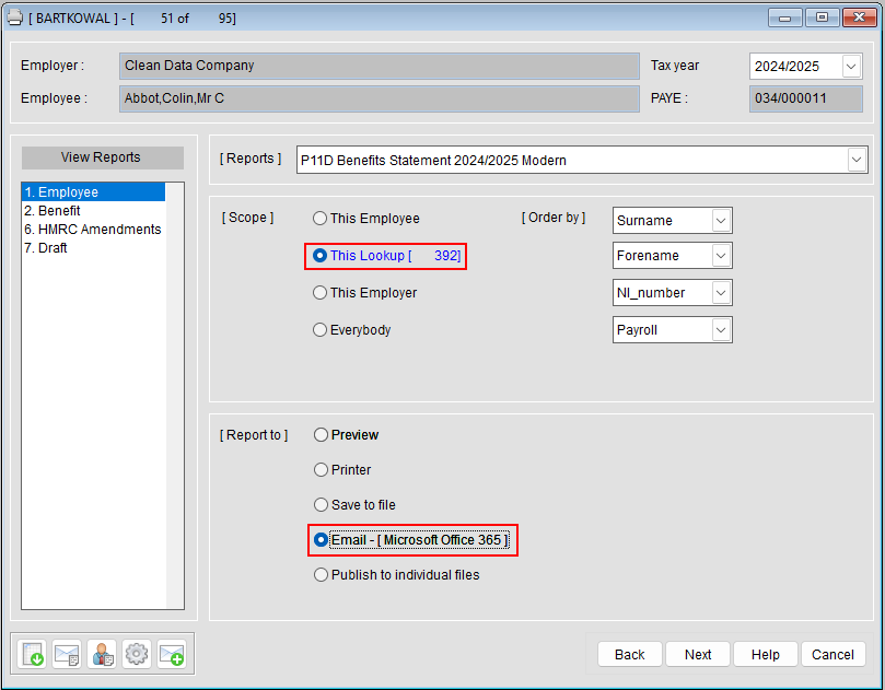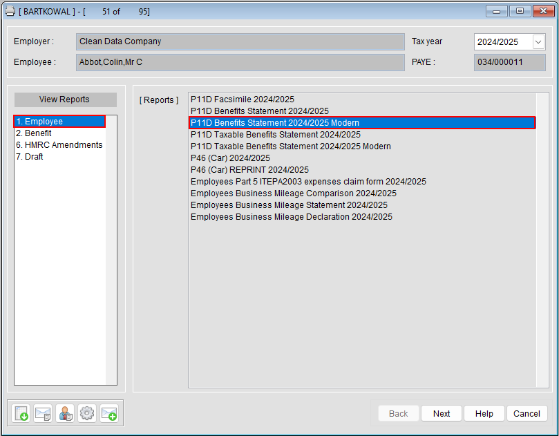 Select the employee report that you wish to send from the Employee report list - typically P11D Facsimile or Benefits Statement and click Next