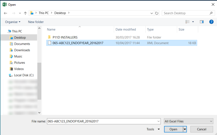 Alternatively, you can create a copy of the XML file from the P11D Organiser "WWWFBI" folder.